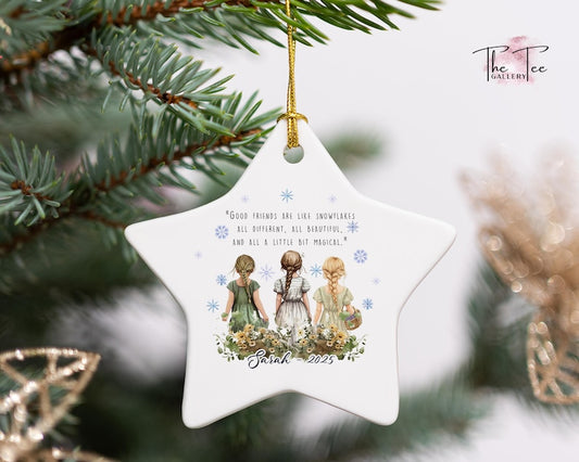Christmas Friend Ornament, Personalized Besties Ornament, Best Friends Ceramic Ornament, Custom Friendship Ornament for Christmas