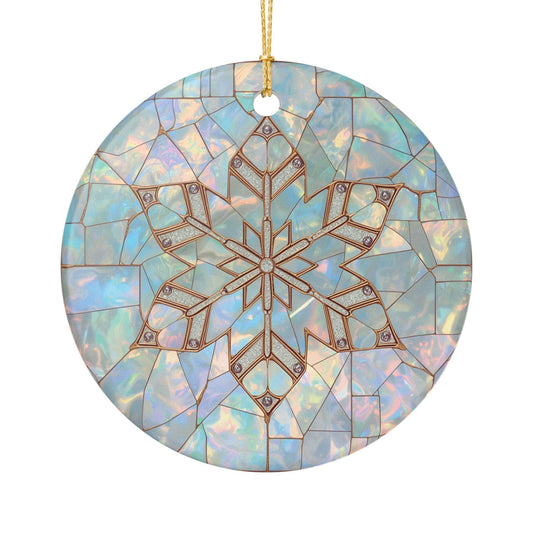 Opalescent Snowflake Ceramic Ornament, Elegant Christmas Gift Snowflake Christmas Decoration Beautiful Opal Mosaic Design Opal Holiday Decor