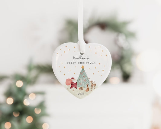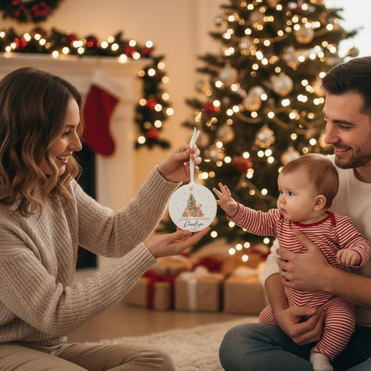 Baby's First Christmas Decoration | Keepsake Christmas Bauble Gift Ceramic Ornament | Personalised Baby's 1st Christmas Scene Decoration