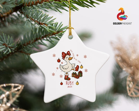 Personalized Name Funny Goose on the Loose Christmas Ceramic Ornament, Xmas Gift, Decoration Christmas Spirit Keepsake Gift, Goose Xmas Tree