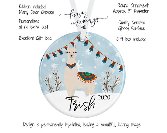 Christmas Llama Ornament, Alpaca Ornament, Christmas Tree Christmas Decoration, Ceramic Ornament, Personalized Gift, Llama Decor, Ornaments