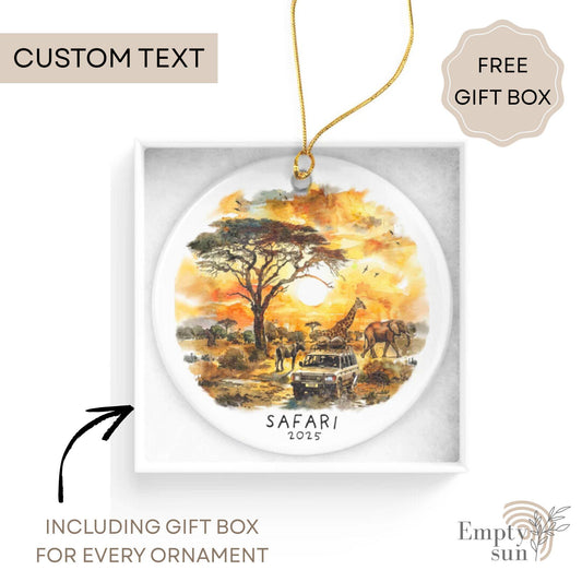 Personalized Safari Christmas Ceramic Ornament, Africa Ornament, Travel Christmas Ornament