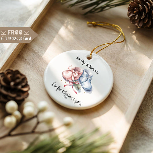 Personalized Twins First Christmas Ornament, Custom Name Ceramic Gift, Baby Booties Keepsake, Baby Shower