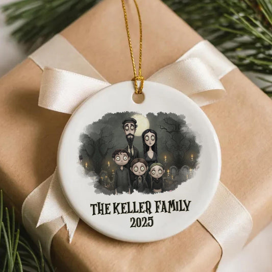 Custom Gothic Family Ceramic Ornament, Halloween Portrait Keepsake, Unique Holiday Spooky Gift, Personalized Illustration from Your Photo