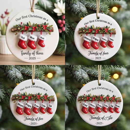 Personalized Family Christmas Ornament: Round or Heart Ceramic Keepsake