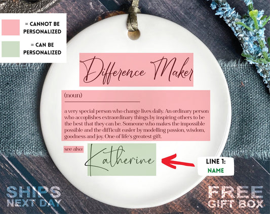 Difference Maker Christmas Ornament - Friend Christmas Ornament- Personalized Mentor Christmas Ceramic Ornament - Teacher Christmas Gift