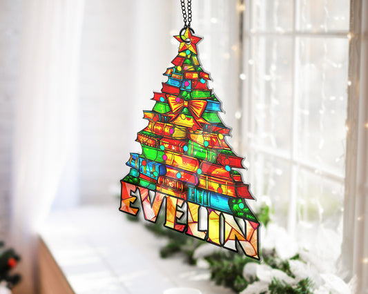 Personalized Christmas Tree Suncatcher Ornament, Christmas Tree Ornament, Christmas Tree Decor, Xmas Gift, Christmas Decor, Christmas Gift