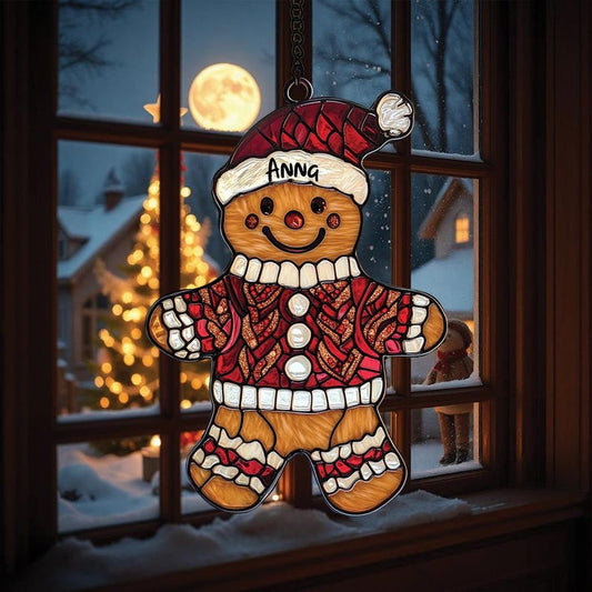 2024 Christmas Acrylic Window Hanging Suncatcher Personalized Gingerbread Christmas Ornament Custom Name Christmas Gift for Kids