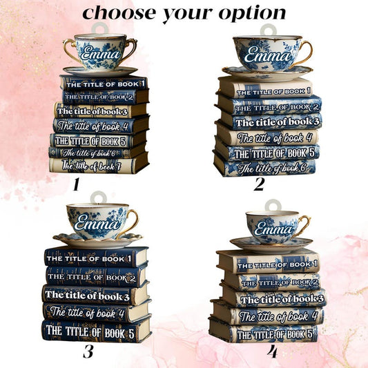 Custom Book Lover Ornament – Stacked Books With Teacup – Personalized Christmas Tree Gift For Librarians & Bibliophiles Gift for Book Lovers