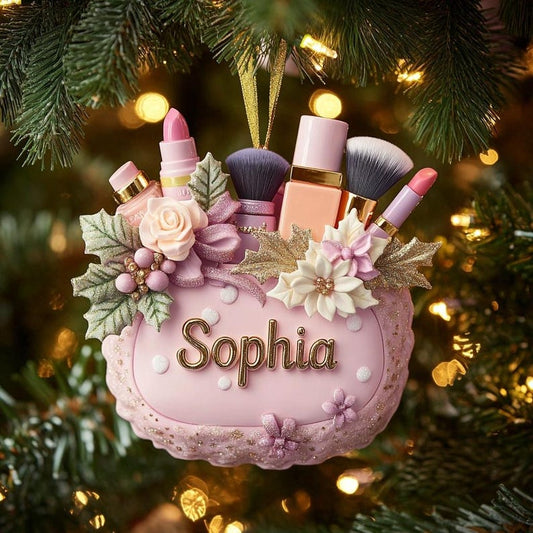 Personalized Makeup Christmas Ornament - Custom Beauty Brush Tree Decor With Name - Gift For Makeup Lovers