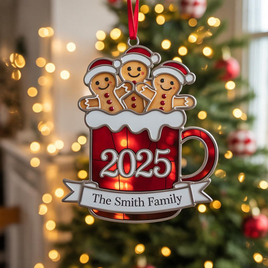 Gingerbread Family Christmas Acrylic Suncatcher, Personalized Family Holiday Ornament, Custom Xmas Window Hanging, Christmas Tree Hanging