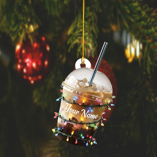 Personalized Iced Coffee Cup Christmas Ornament, Custom Name Caffeine Lover Gift, Unique Barista Decor, Funny Coffee Drinker Xmas Hanging