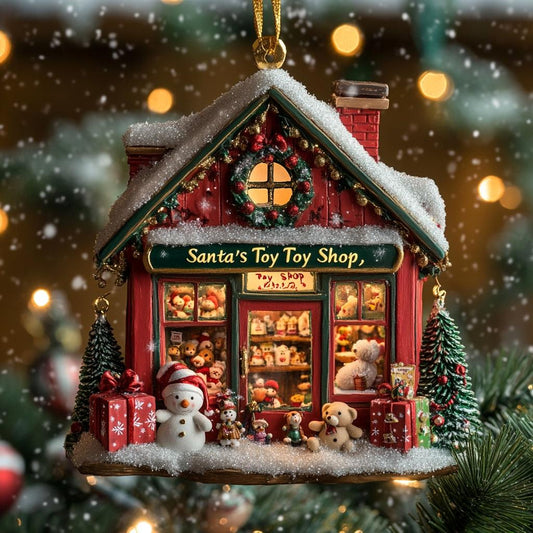 Personalized Christmas Toy Shop Ornament - Santa’s Workshop Mini House Decor, Holiday Gift For Kids And Collectors