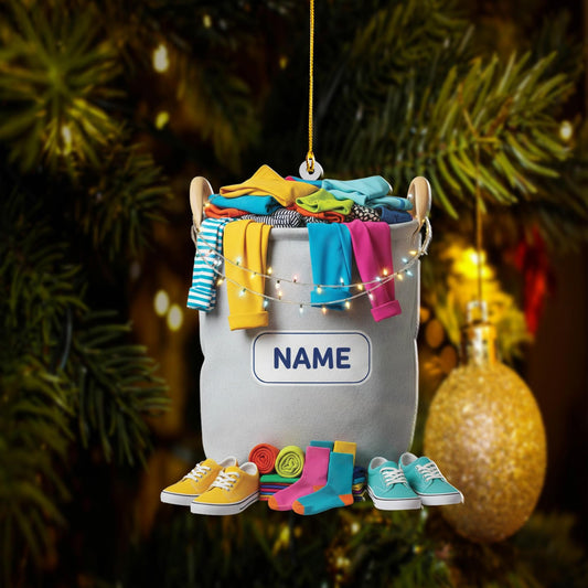 Personalized Laundry Basket Christmas Ornament, Custom Name Clothing Decor, Cute Socks and Shoes Gift Idea, Unique Home Decoration