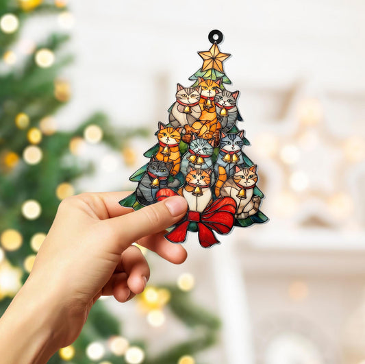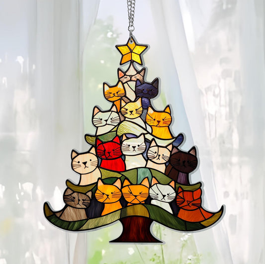 Cat Christmas Tree Suncatcher Ornament, Acrylic Window Hanging for Cat Lovers, Hanging Ornament for Cat Lovers, Cat Decor, Christmas Gifts