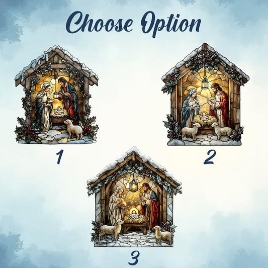 Nativity Scene Suncatcher, Faux Stained Acrylic Christian Window Hanging, Nativity Jesus Christ Decoration,Religious Christmas Home Decor