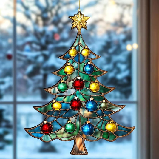 Christmas Tree Suncatcher – Stained Glass Style Acrylic Window Hanging Ornament, Holiday Home Decor Gift