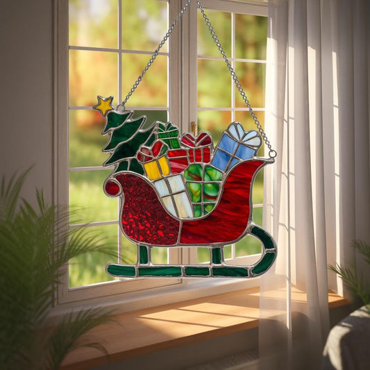 Christmas Gifts Cart Acrylic Suncatcher, Christmas Faux Suncatcher, Christmas Home Decor, Christmas Cart Acrylic Suncatcher