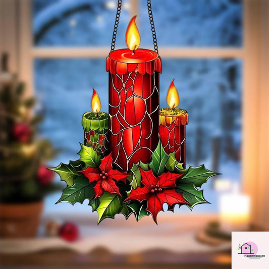 Christmas Candle Trio Acrylic Suncatcher: Festive Holiday Window Decor