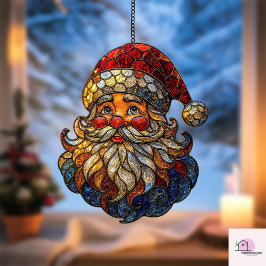 Santa Face Christmas Acrylic Suncatcher: Festive Holiday Window Hanging