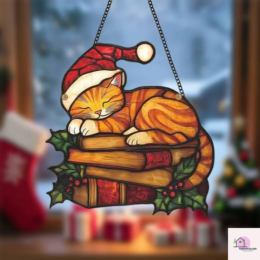 Santa Cat Christmas Acrylic Suncatcher: Cozy Holiday Window Decor